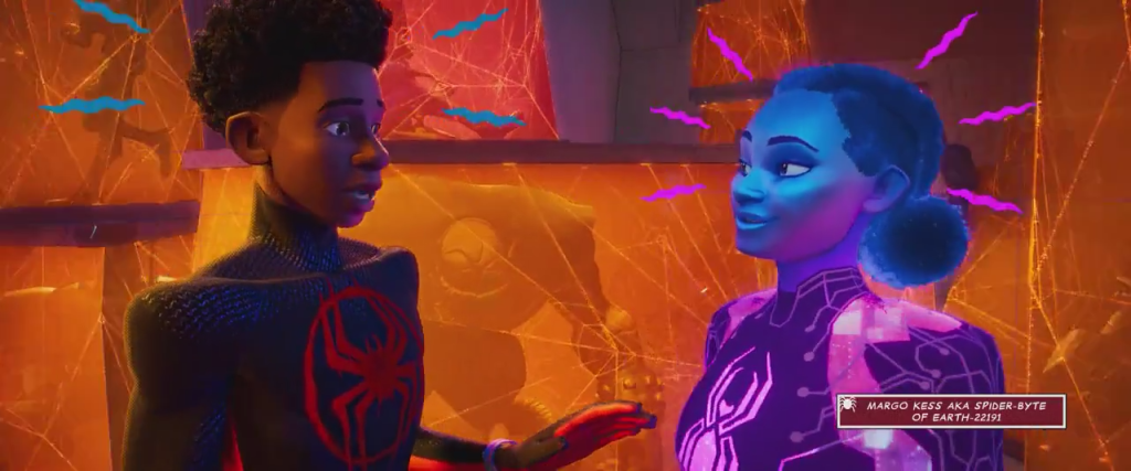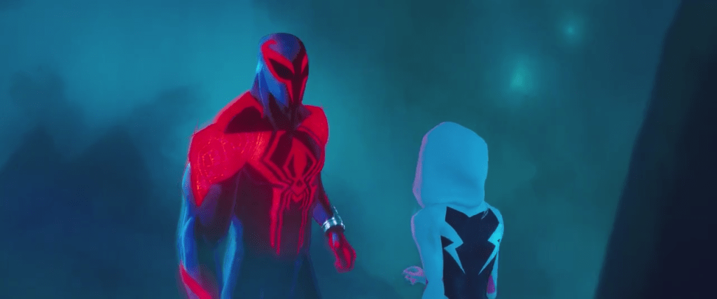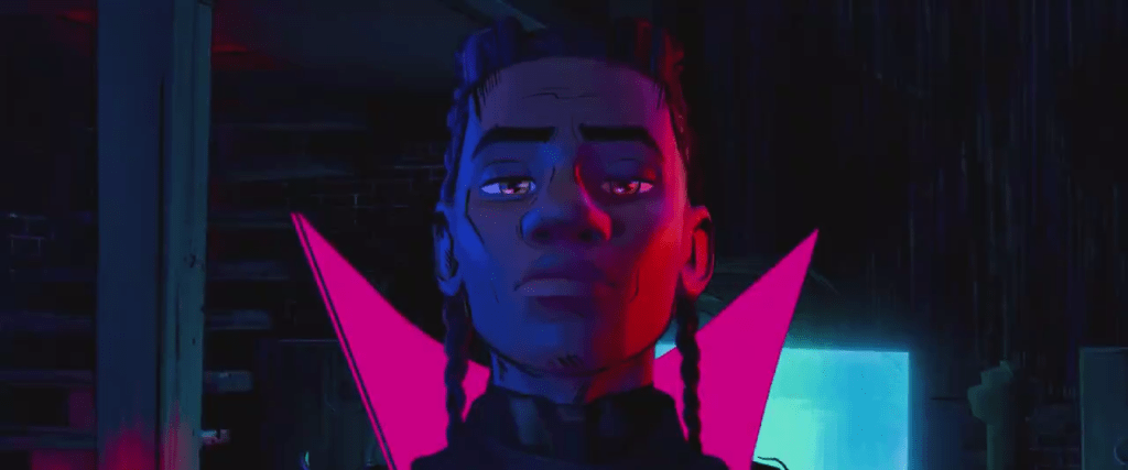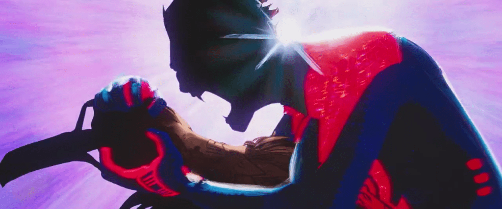 Now our boy, Miles Morales himself. The first movie had him learn to trust himself and his new abilities, and believe that he can be Spider-Man. That he can wear the mask. This film places him at a low point to test that position. While he’s accepted he’s Spider-Man, he struggles with the possibility that his parents might not, alienating himself from them. Many continue to talk about the great potential Miles has, without asking him if he wants to live up to their ideas of him. He learns that he did indeed become Spider-Man through a cosmic fluke, and is labelled a mistake. And he comes face to face with a potential destiny for him had he not been bitten. The last straw is learning, in extension from the last movie that there are some people he can’t save, now he’s now faced with the idea that there are instanced where he shouldn’t try. But Miles is ultimately going to decide how his story’s going to end. He’s going to be the Spider-Man who does both, saving the individual and the many. He mirrors the Spot in that he’s willing to risk the multiverse for a goal that’s petty in the cosmic scale, but Miles is obviously trying to save someone’s life whereas Spot is trying to kill. His idealism and ingenuity marks him above the rest of the Spider-Society. We see him use his Venom Strike and invisibility in strategic ways, and it’s satisfying to watch after seeing him stuggle to learn his powers in the first film. Miles is not going to let his status as a cosmic flaw hold him back. Even with his insecurities and imposter syndrome from the first movie being revealed to completely warranted here, he’s Spider-Man. And no one can take that away from him.