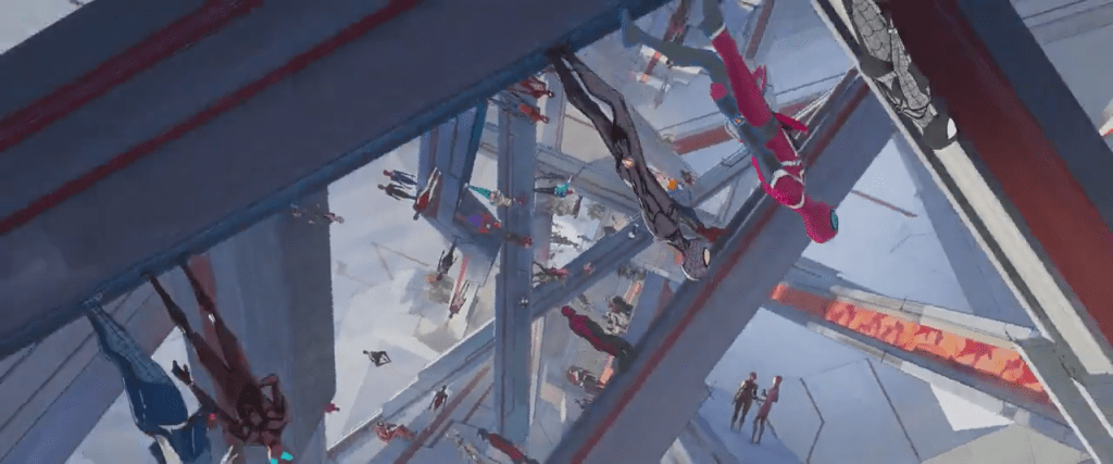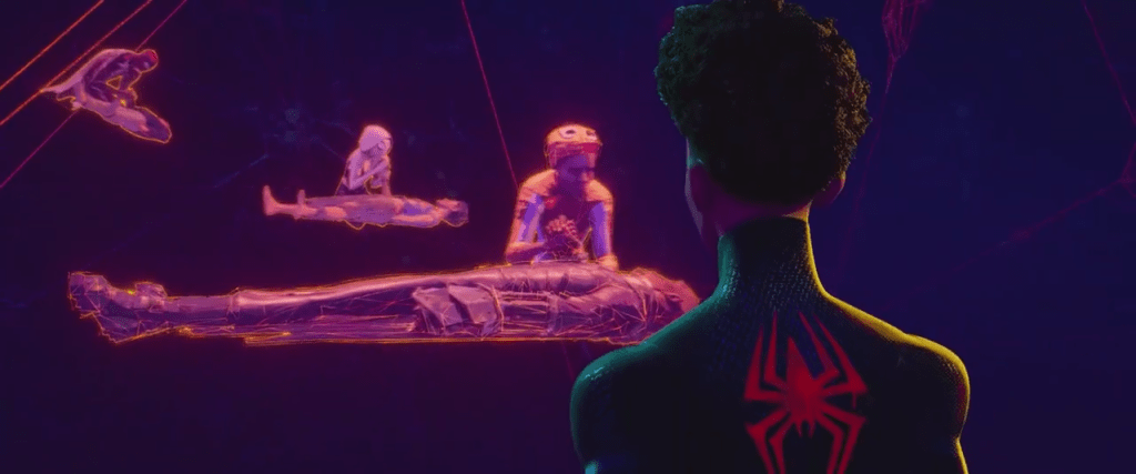 To recap, this movie ties its own universe to that of the Spider-Man TV shows, the SSU, the Raimi-verse, the Webb-verse, the comic’s universe, and most worrisomely, the MCU. Miguel’s map of the multiverse, as I said, is almost identical to the model the MCU’s being using since Loki, and with the direct reference to No Way Home, it’s safe to say that this movie takes place in the MCU’s multiverse. The trouble with that is, as great as this movie, it’s now saddled to the ideas of worse writers. Canon events are essentially the equivalent of Nexus Events or Absolute Points or whatever the hell the MCU is calling them now. Things that are “supposed” to happen. We’ve seen the disastrous consequences of trying to stop them and this film follows in line. In fact, the destruction of the universe Miguel inhabited sounds identical to Multiverse of Madness‘s incursions. As much as I’d like this movie to stay as far from that one as possible, an explanation is now in order of how the Spider-Society doesn’t cause incursions everywhere they go. I guess we have to assume they aren’t around long enough to cause one? Speaking of the Spider-Society, their purpose is quite similar to the TVA’s, preventing anomalies in time. What role do they play in all this? Are they aware of the Spider-Society? Does one group rank above the other?