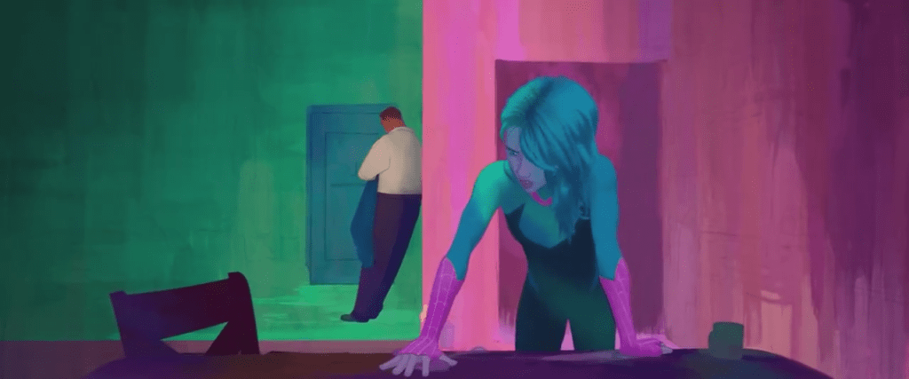 (Oh and uh, to address the alleged trans allegory in the movie since it’s so topical, I’m gonna put it out there that I don’t think Gwen is trans. It doesn’t make a difference if she is, mind, but I think the most we can conclude from the movie is that she’s an ally. She has a flag that says “Protect Trans Kids” in her room, and the colors in her world evoke the trans flag and her speech to her father is reminiscent of someone coming out, but I don’t think that’s enough to confirm that the character is transgender. I’m just not sure that these are the kind of movies that would shy away from a more substantive look at a topic like that if they wanted to address it outright. That said, anyone should be able to take away from a movie whatever they want. If transgender folk see themselves in her and her story speaks to them personally, no one should take that away from them. It can only be a good thing that so many LGBT folk would feel seen because of this movie. We can always have more trans representation. I just don’t think this is a trans allegory, or even an allegory for coming out. Gwen’s arc in this movie is so rich on its own and it kinda annoys me that the conversation has been swallowed by the debate of “Is she trans or not?”, perpetuated by people looking for something that might not be there and actual transphobes. I hope we can have a well-written, animated story that addresses this topic properly in text, and not leave the audience to scour the subtext.)