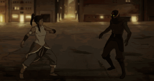 Mako and Korra give pursuit on Naga and the masked kidnappers eventually tie Naga’s legs with a bola. This prompts two of the motorcyclists to fight Korra and Mako hand-to-hand in what is a pretty damn cool fight scene. Both of the benders try to fight off the attackers with firebending, but they counter with flips, twirls, and stunningly good combat skills. Their combat style is heavily reminiscent of Ty Lee, and attentive viewers are rewarded with the reveal that they are indeed Equalist chi-blockers.