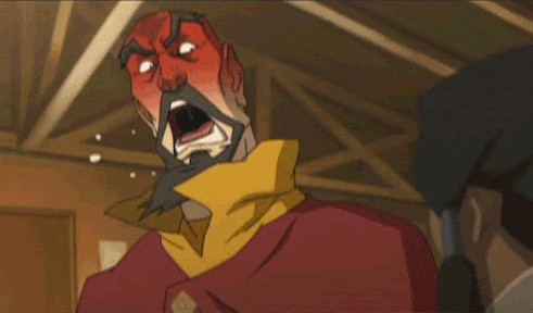 The problem isn’t Tenzin’s reaction per se, it’s that it’s paired with such a cartoony expression before going back to normal. Not only does it clash with the tone of the scene, but JK Simmons’ delivery is…fairly tame? It doesn’t match this over-the-top expression Tenzin is making. He probably should’ve channeled Cave Johnson or J. Jonah Jameson here.